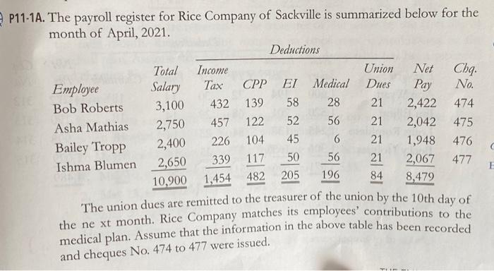 Solved Cha 58 474 P11 1a The Payroll Register For Rice Chegg Com